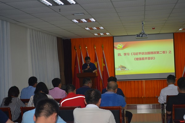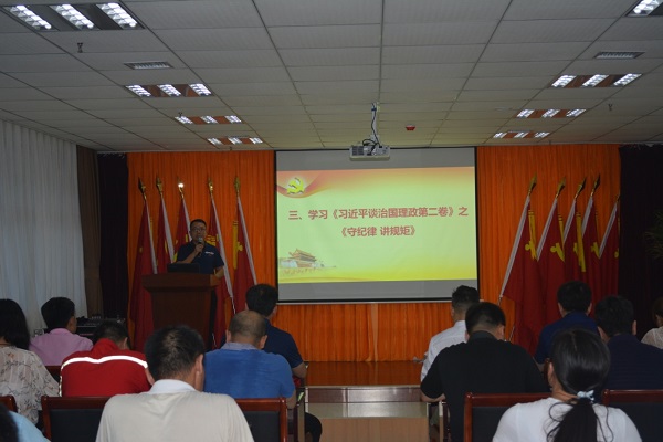 活動(dòng)共有五項(xiàng)議程,會(huì)議開始,全體黨員共唱國歌、重溫入黨誓詞,隨后分別學(xué)習(xí)了《習(xí)近平談治國理政第二卷》之《守紀(jì)律 講規(guī)矩》和《增強(qiáng)看齊意識(shí)》兩篇論著。這兩篇文章,使全體黨員進(jìn)一步明確了向黨看齊、始終堅(jiān)決維護(hù)以習(xí)近平同志為核心的黨中央權(quán)威和集中統(tǒng)一領(lǐng)導(dǎo),始終牢固樹立“四個(gè)意識(shí)”和“四個(gè)自信”,切實(shí)把思想和行動(dòng)統(tǒng)一到習(xí)近平新時(shí)代中國特色社會(huì)主義思想上來,統(tǒng)一到黨的十九大確定的重大決策部署上來。大家一致表示,“守紀(jì)律、講規(guī)矩”就必須內(nèi)化于心,外化于行;增強(qiáng)看齊意識(shí),實(shí)質(zhì)上就是堅(jiān)決貫徹落實(shí)黨中央的部署和決定,落實(shí)到具體工作中,就是要堅(jiān)決執(zhí)行上級黨委的決策部署,遵紀(jì)守法,盡職盡責(zé),確保公司各項(xiàng)工作任務(wù)的勝利完成。