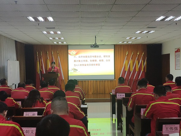 隨后,召開發(fā)展黨員工作會(huì)議。按照發(fā)展黨員工作流程,研究討論了發(fā)展對象王偉強(qiáng)、張珊珊、楊強(qiáng)、白東生4人轉(zhuǎn)預(yù)備黨員接收事宜。