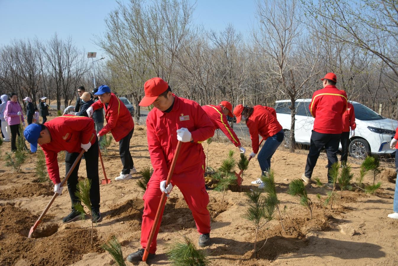 巍峨連綿的青山下,植樹(shù)現(xiàn)場(chǎng)火熱而有序,挖坑、扶苗、填土、澆水……春風(fēng)融融,春日暖暖,大家干勁十足。青山下,一株株新栽種的樹(shù)苗迎風(fēng)挺立,盡顯春日勃勃生機(jī)。一排排栽下的新綠映襯著一張張燦爛的笑臉,繪就一幅共護(hù)生態(tài)的美好畫(huà)卷。