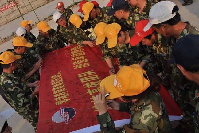 本次戶外拓展訓(xùn)練,內(nèi)容豐富,寓教于樂(lè),在30日晚上舉辦了別開(kāi)生面的文藝晚會(huì)。8支隊(duì)伍在籌備時(shí)間不到70分鐘、無(wú)劇本、無(wú)道具的情況下,群策群力,自編自演,為晚會(huì)獻(xiàn)上了精彩紛呈的節(jié)目。特別是在畢業(yè)墻環(huán)節(jié),萬(wàn)達(dá)重工團(tuán)隊(duì)斗志昂揚(yáng)、眾志成城,創(chuàng)造了九分三十秒內(nèi)全員成功攀登4.2米高墻的成績(jī),總教練對(duì)此嘖嘖稱贊,夸贊“萬(wàn)達(dá)重工團(tuán)隊(duì)創(chuàng)造了奇跡”!