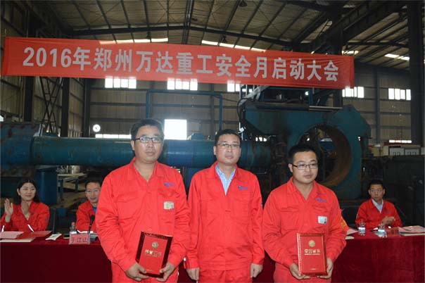 早上八點(diǎn)整,萬達(dá)重工“2016安全月啟動大會”在公司公司一線----生產(chǎn)車間圓滿隆重召開。公司董事長、書記何清做《強(qiáng)化安全發(fā)展理念、提升全員安全素質(zhì)》講話,公司總經(jīng)理張付峰宣讀了《2016年“公司安全月”活動實施方案》,公司總工程師、安全領(lǐng)導(dǎo)小組執(zhí)行組長袁希海作《公司上半年安全報告》講話,公司控股公司、子公司、生產(chǎn)方陣、營銷方陣、行政方陣分別派代表做會議發(fā)言。在安全月啟動大會上,對公司2015年7月-2016年6月安全生產(chǎn)管理優(yōu)秀班組(機(jī)修電工班、無損檢測班)進(jìn)行了表彰,并且優(yōu)秀班組代表進(jìn)行了經(jīng)驗分享。