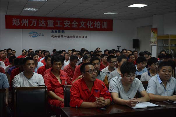以人為本,打造幸福萬達(dá),是萬達(dá)重工安全管理和安全文化建設(shè)的一個(gè)重要的原則。為提高員工安全意識(shí),確保安全生產(chǎn),鄭州萬達(dá)重工股份有限公司講師團(tuán)昨日在公司會(huì)議室舉辦了 “安全文化建設(shè)宣貫培訓(xùn)”。此次培訓(xùn)由講師團(tuán)執(zhí)行團(tuán)長(工會(huì)主席)于江山授課,會(huì)場(chǎng)座無虛席。