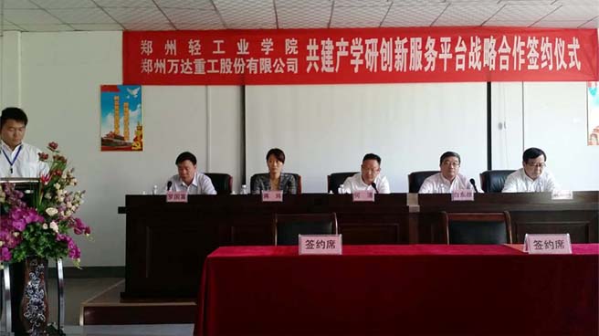 2016年9月21日,由鄭州萬達(dá)重工股份有限公司與鄭州輕工業(yè)學(xué)院共同建立的產(chǎn)學(xué)研創(chuàng)新服務(wù)平臺戰(zhàn)略合作簽約揭牌儀式在鄭州萬達(dá)重工股份有限公司順利舉行。