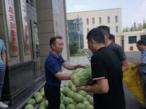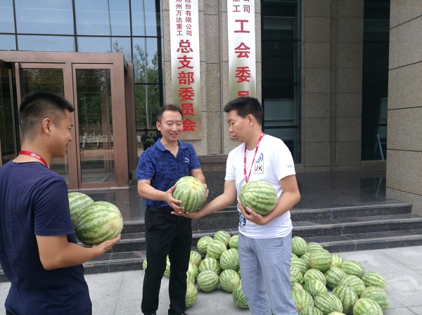 工會(huì)主席于江山在發(fā)放西瓜中提醒大家高溫季節(jié)要做好自我調(diào)節(jié),防止高溫中暑,同時(shí)叮囑相關(guān)負(fù)責(zé)人要落實(shí)好防暑降溫工作,根據(jù)實(shí)際情況合理安排作業(yè)、勞動(dòng)強(qiáng)度,確保一線(xiàn)員工生產(chǎn)安全和身體健康。