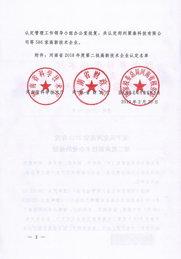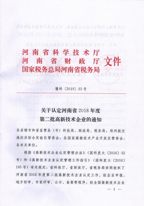喜訊:鄭州萬(wàn)達(dá)重工股份有限公司被認(rèn)定為河南2018年度高新技術(shù)企業(yè)