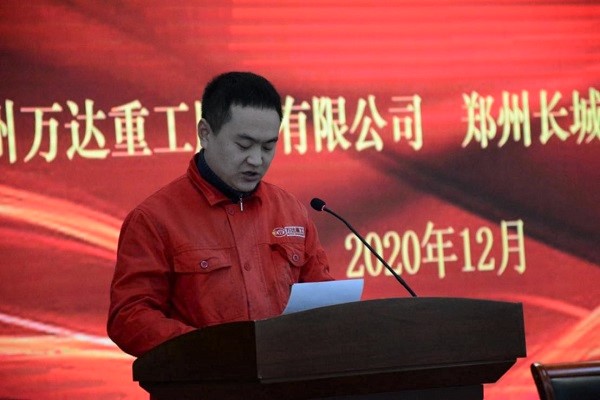 鄭州航空港區(qū)人社局趙杰處長,股份公司董事長、書記何清,鄭州長城科技中等專業(yè)學(xué)校校長司建峰,股份公司總經(jīng)理張付峰,長城科技中等專業(yè)學(xué)校副校長李珊珊等領(lǐng)導(dǎo)共同出席本次活動(dòng),萬達(dá)重工190名學(xué)員及導(dǎo)師一同到場參加。會議由股份公司監(jiān)事會主席、工會主席于江山主持。