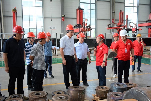 魏學彬副主任一行先后深入堆焊智能制造車間、彎制車間、機加工、物流倉儲等生產車間進行了參觀,實地查看了公司先進的生產設備、繁忙而有序的生產環(huán)境,股份公司董事長、書記何清就公司發(fā)展規(guī)劃、科技創(chuàng)新、市場布局、生產設備、技術及生產能力情況向調研組一行進行了詳細匯報,調研組一行對萬達重工現代化的管理理念,高遠的發(fā)展目標,一流的生產能力表示肯定,勉勵企業(yè)進一步提升創(chuàng)新能力,努力把企業(yè)做優(yōu)做強做大。
