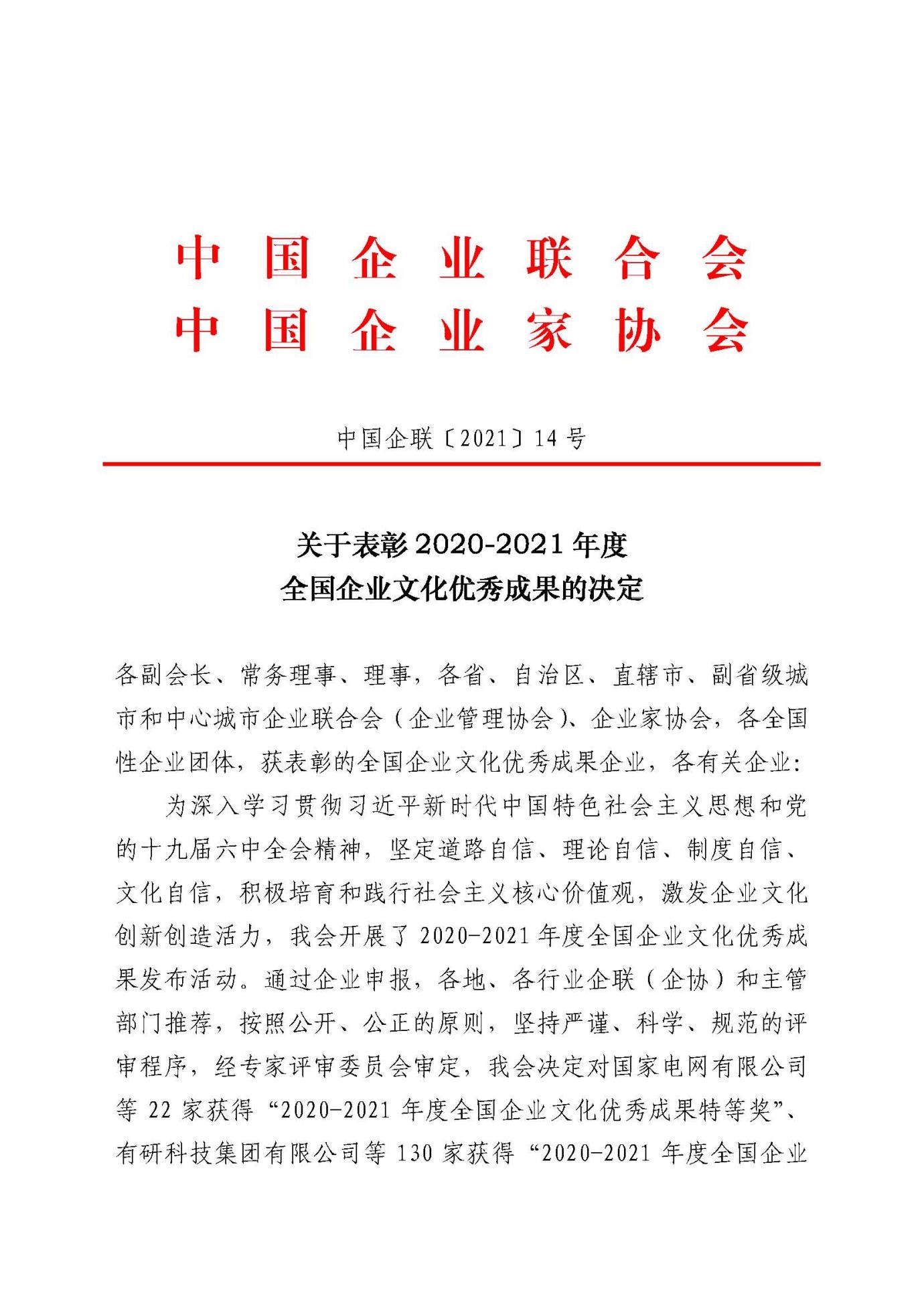近日,中國企業(yè)聯(lián)合會、中國企業(yè)家協(xié)會印發(fā)文件表彰了2020-2021年度全國企業(yè)文化優(yōu)秀成果企業(yè),鄭州萬達重工股份有限公司榮獲“2020-2021年度全國企業(yè)文化優(yōu)秀成果二等獎”!