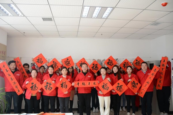 以寫春聯(lián)、書福字為主題的送溫暖活動,是萬達(dá)重工多年來一直堅持的傳統(tǒng)活動,一副副福字不僅蘊含了股份公司對全體員工的美好祝福,更寄托了大家對新的一年的美好期望。通過開展“喜迎新春 寫福送福”活動,既傳播了中國傳統(tǒng)文化,增添了節(jié)日氛圍,又拉近了股份公司與員工之間的距離,讓大家在感受中國傳統(tǒng)文化的同時,折射出“平安、悅享、感恩、幸福”的企業(yè)關(guān)愛理念。最后,工會主席于江山、各工會委員同公司書法愛好者們進(jìn)行合影留念,此次活動所寫的福字將與發(fā)放的春節(jié)禮品一起全部送到所有萬達(dá)員工手中。