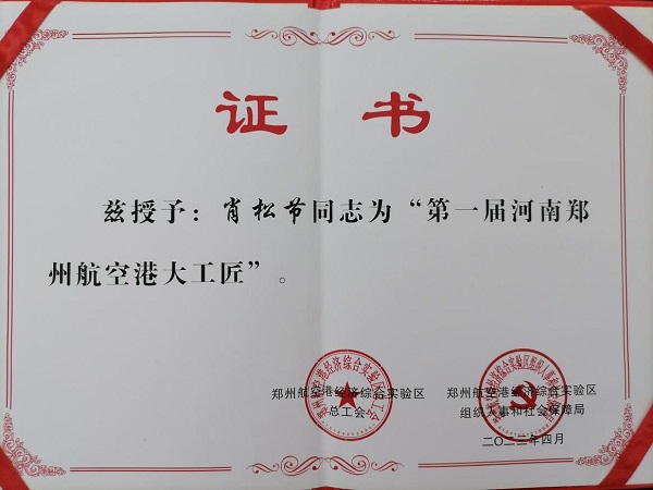 五一勞動獎狀是各級工會授予在中國特色社會主義建設中做出突出貢獻的企事業(yè)單位、機關團體的光榮稱號,含金量十足。個人“第一屆河南鄭州航空港大工匠”榮譽稱號代表著對工作執(zhí)著專注、精益求精、一絲不茍、追求卓越的新時代工匠人才。