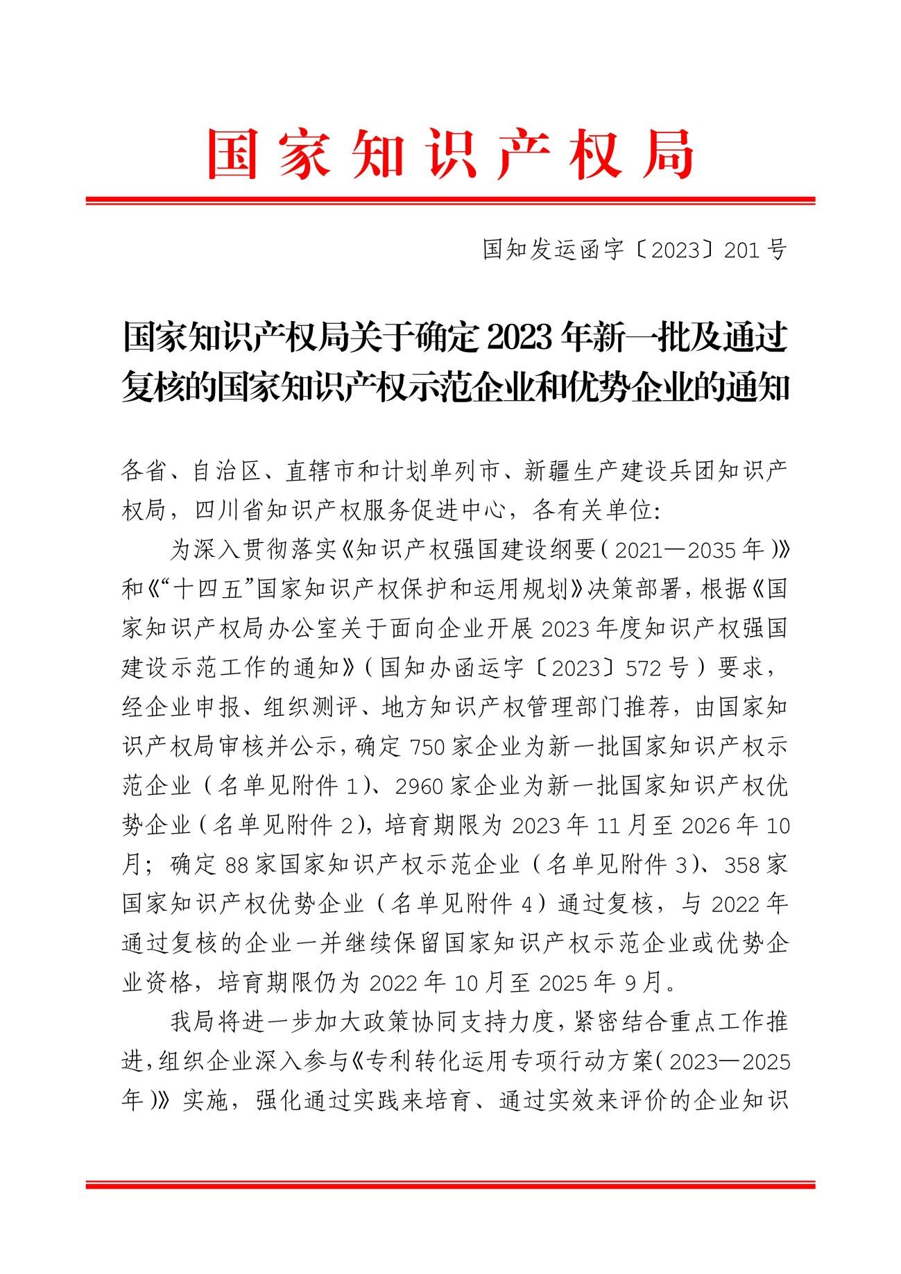2023/12/08 1037 2023年11月29日,國家知識產(chǎn)權(quán)局公布了2023年度國家知識產(chǎn)權(quán)示范企業(yè)和優(yōu)勢企業(yè)評定結(jié)果,鄭州萬達重工股份有限公司(以下簡稱“萬達重工&rdq