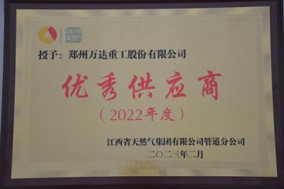 2023/04/13   679 近日,鄭州萬(wàn)達(dá)重工股份有限公司收到了江西省天然氣集團(tuán)有限公司管道分公司頒發(fā)的2022年度優(yōu)秀供應(yīng)商榮譽(yù)獎(jiǎng)牌,獲得該公司2022年度優(yōu)秀供應(yīng)商榮譽(yù)稱號(hào)。業(yè)主方對(duì)公司所承接彎管項(xiàng)目的產(chǎn)品質(zhì)量、交貨周期、售后服務(wù)等方面給予高度贊揚(yáng)。 近年來(lái),萬(wàn)達(dá)重工始終秉承以客戶為中心,以市場(chǎng)為導(dǎo)向,以項(xiàng)目為抓手,以技術(shù)為支撐,以文化為引領(lǐng)...